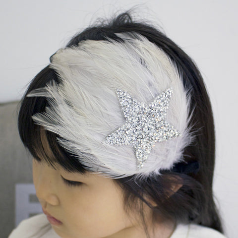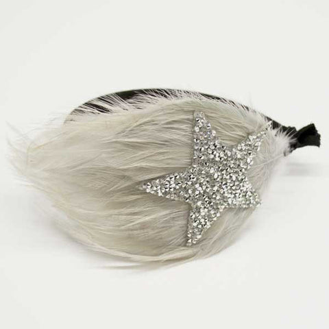 Cotton Gauze Covered with Silver Rhinestone Applique & Soft Feather
