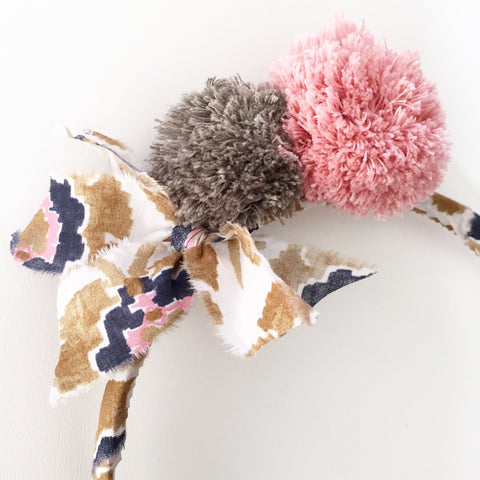 Hand-made pompom hairband, covered in Liberty of London cotton fabric.